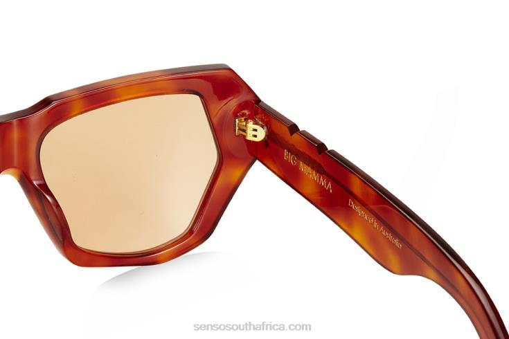The frame is a handmade acetate frame in an oversized square shape and features with angled detailing on the frame and lens. The signature rivets and wide arm of both Petite Amour and Rave Cave tie the collection together. The Big Mamma is inspired by the seventies both in shape and colour palette.