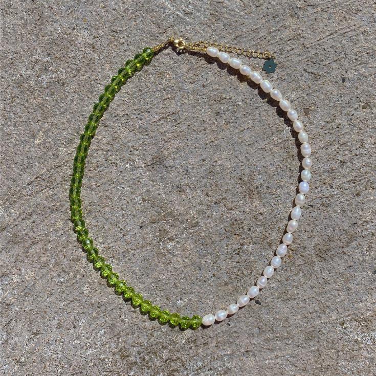 60TRR580 Senso Jewellery Pearl And Swarovski Choker Green