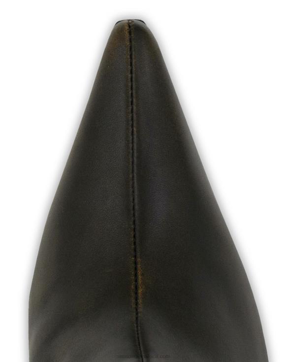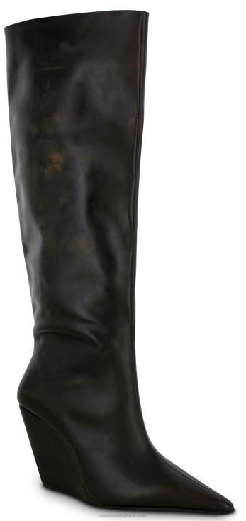 Cocoa vintage calf knee-high boots, featuring a wedge heel, distressed leather look, pointed toe and rubber sole.