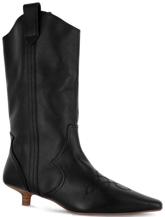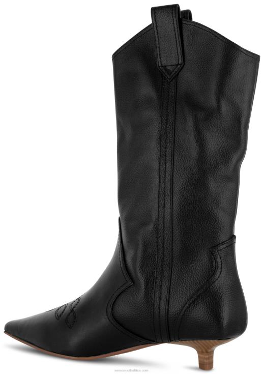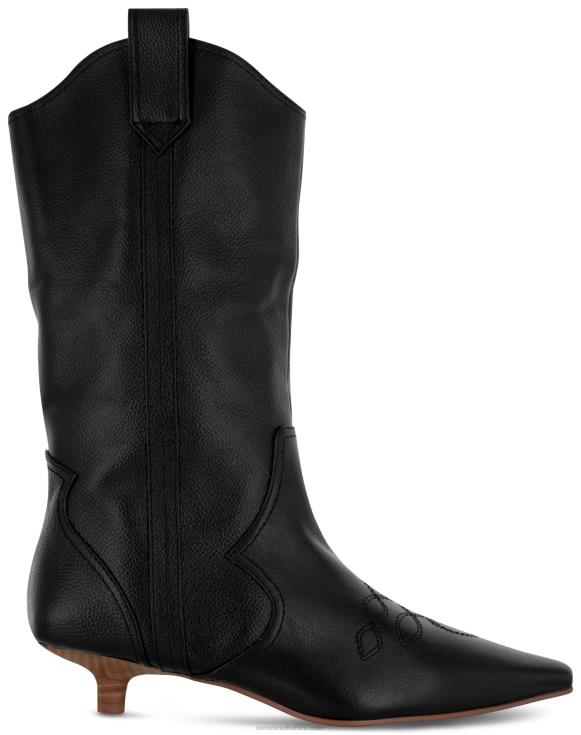 Ebony grained calf leather cowboy boots featuring a subtle kitten heel.