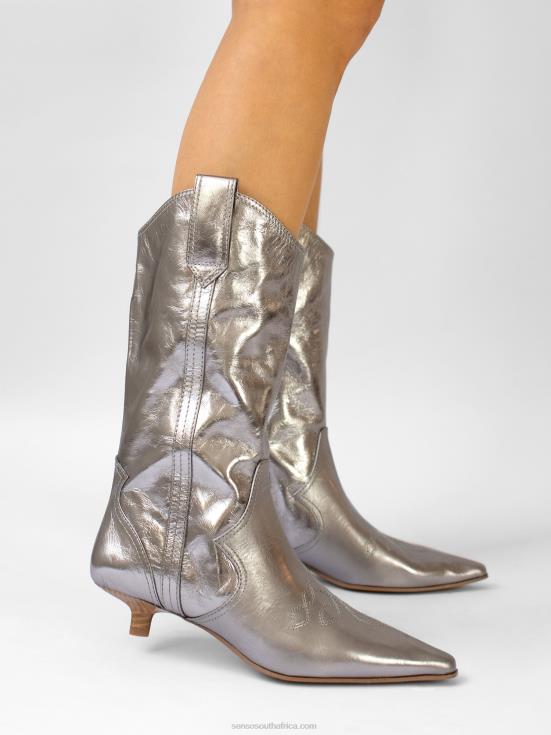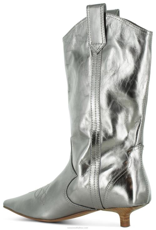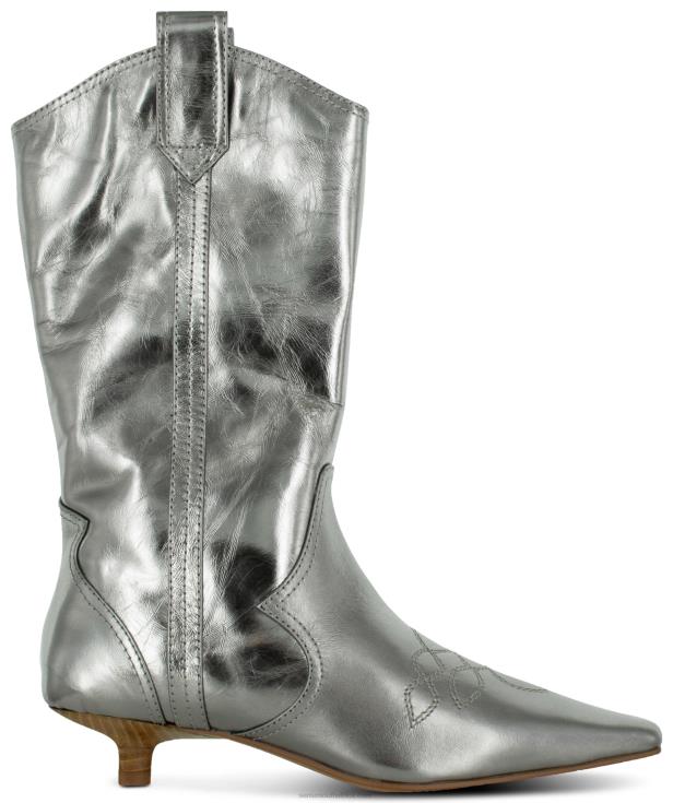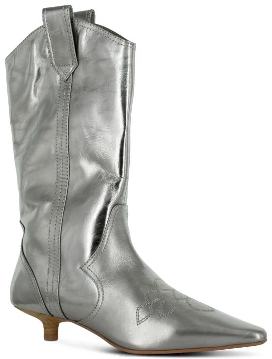 Steel chrome naplack mid-rise cowboy boot, featuring decorative embroidery, side pull-up tabs and a kitten heel.