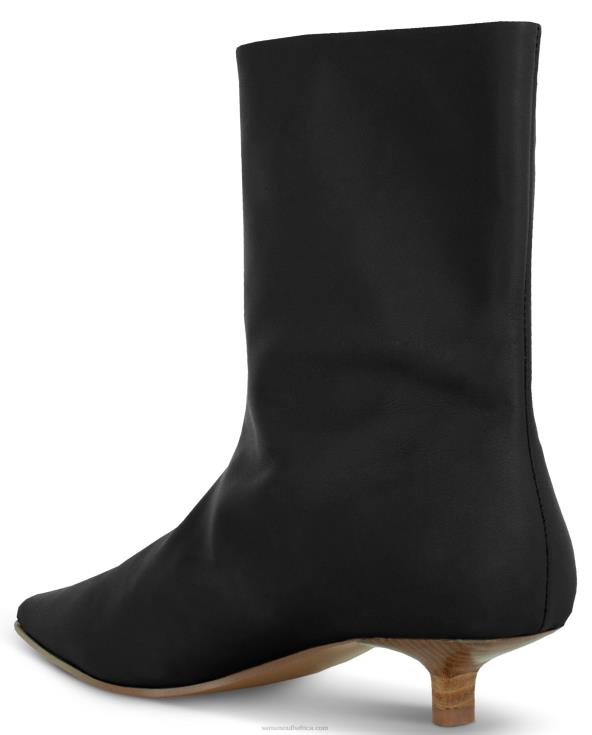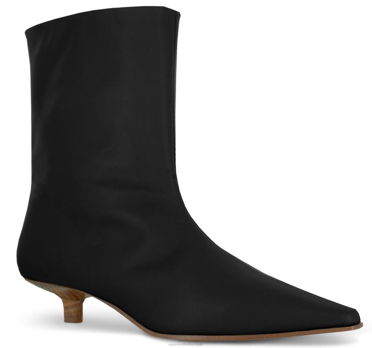 Ebony matte kid leather boots, featuring a pointed toe and court heel.