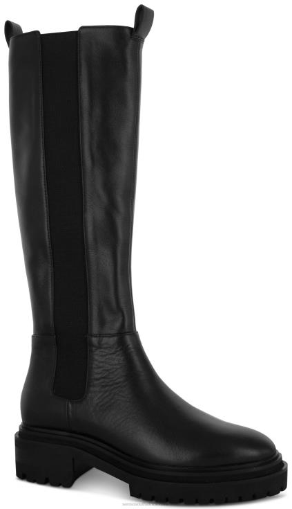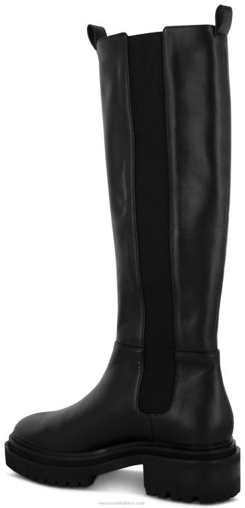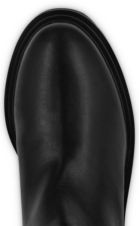 Soft calf knee-high boot, featuring a closed toe and a rubber tractor sole.
