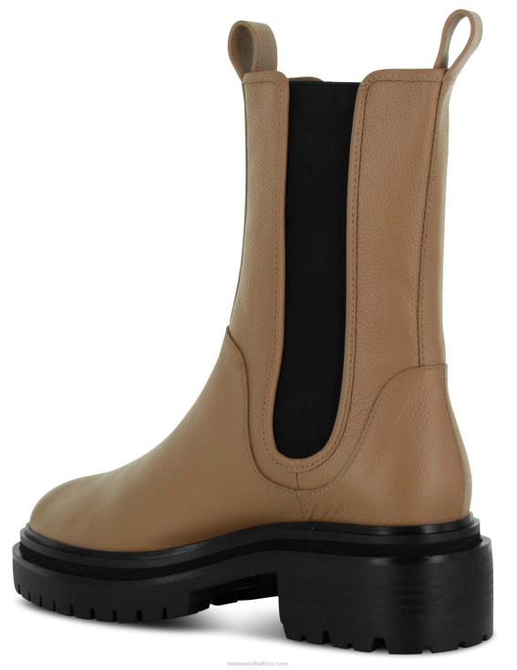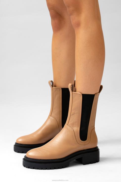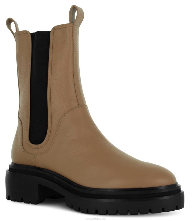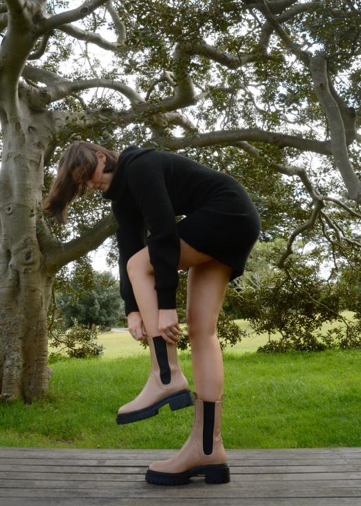 Cinnamon grained calf boot, featuring featuring a chunky rubber sole, elasticated sides and rounded toe.