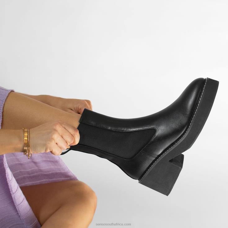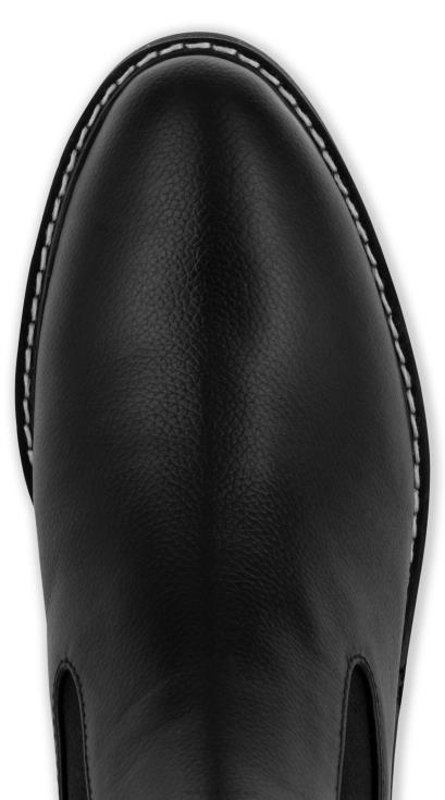 Ebony grained calf boot, featuring a elasticised sides, almond-shaped toe and heel pull tab.