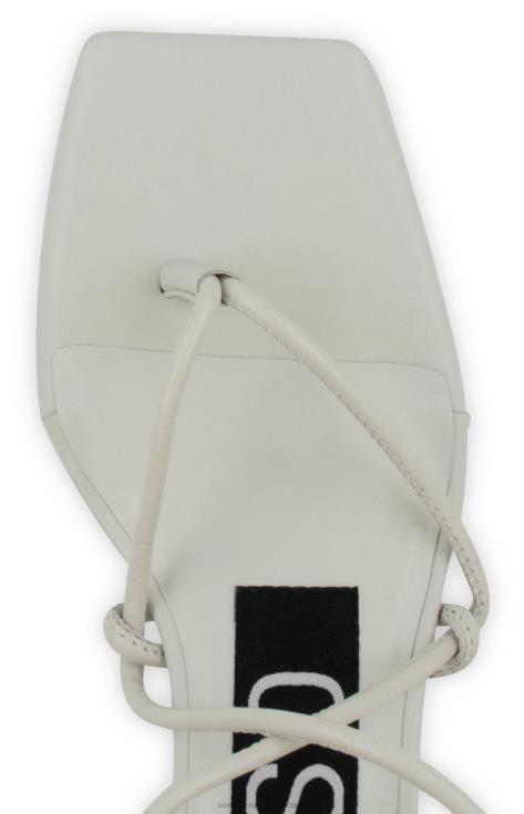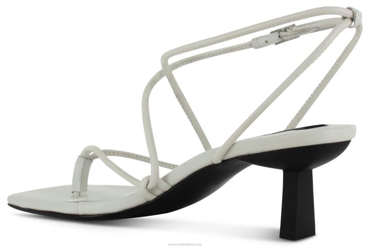 Ice matte kid leather heels featuring a cross-cross design and a thin silver metal buckle.