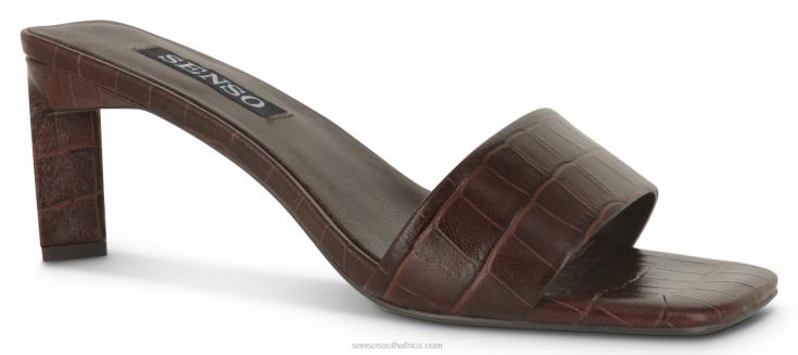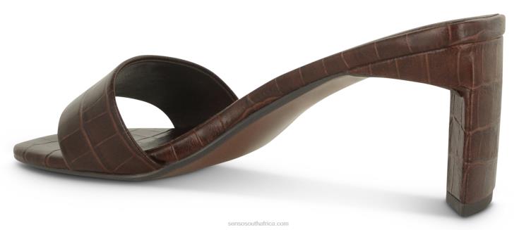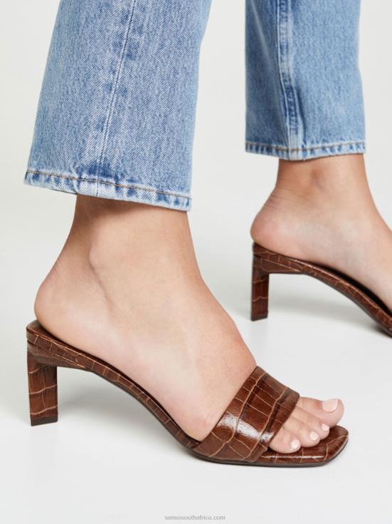 Brown leather Maisy I mules featuring an open toe, a slip-on style, an embossed crocodile effect, a branded insole and a high heel.