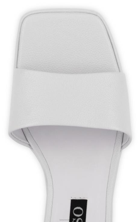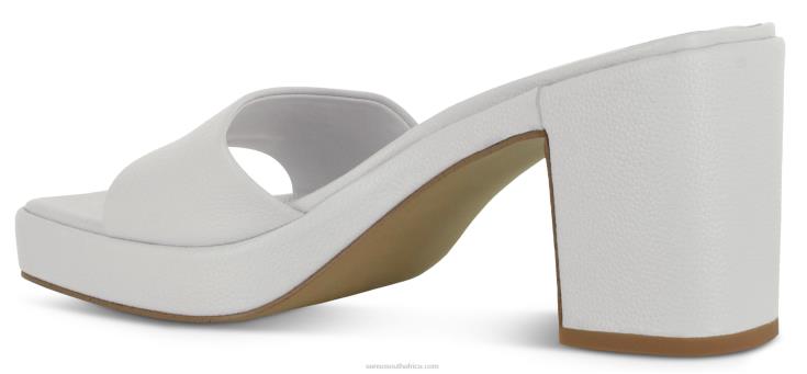 Ice grained calf leather heeled mules featuring a chunky heel and thick front strap.