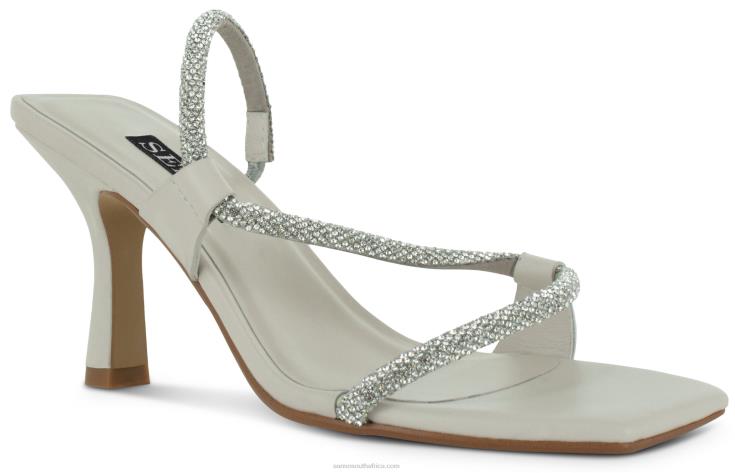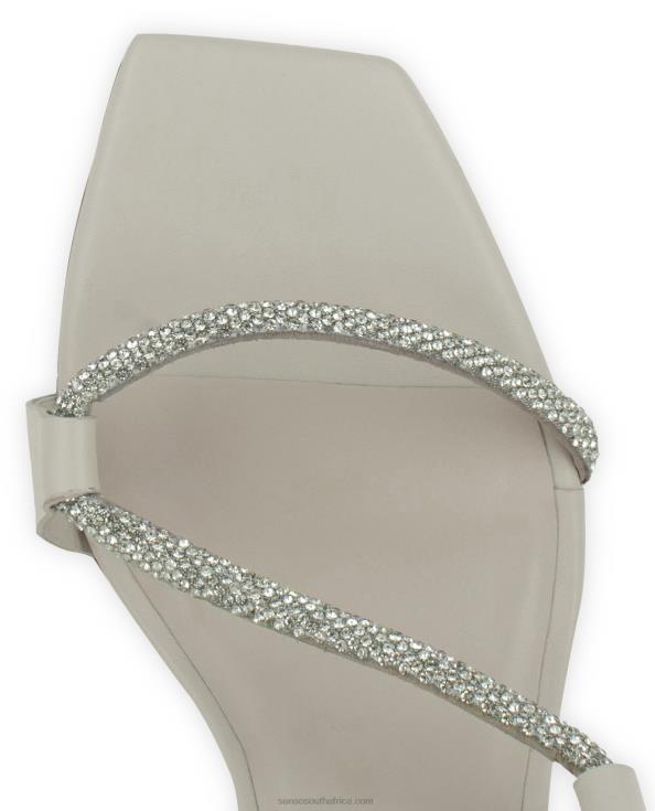 Opal calf leather heels featuring a silver crystal strap.