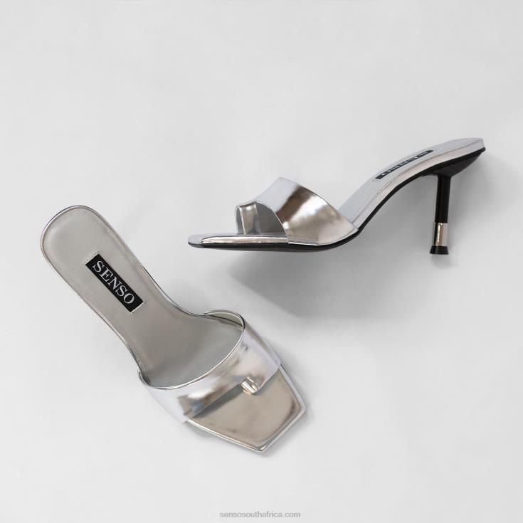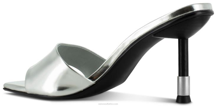 Silver chrome heel, featuring an open toe design, metal trim heel and a resin sole.