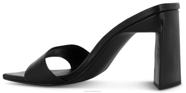 Ebony nappa leather heeled mules featuring a slip-on design, insole branding and a triangular block heel.