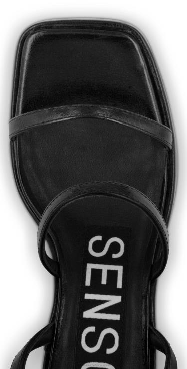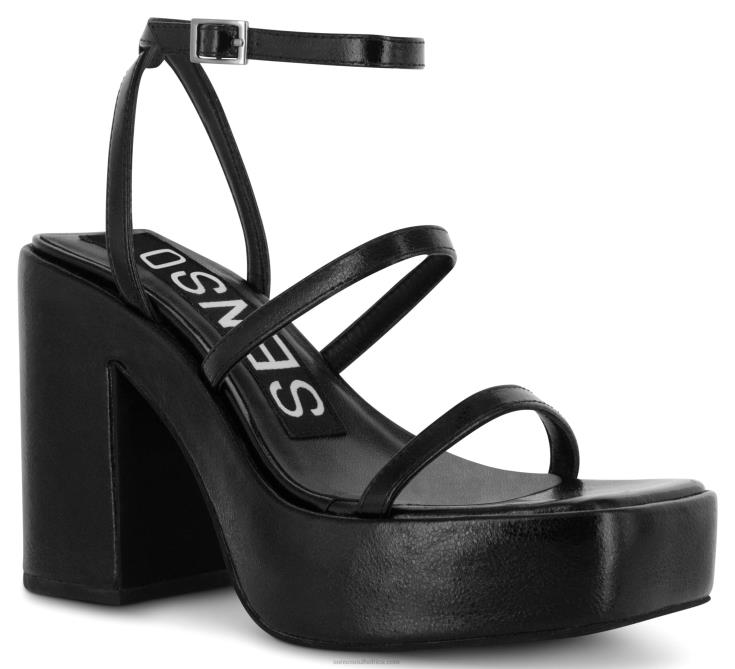 Ebony distressed metallic calf sandals, featuring a platform block heel, metal buckle and square shaped toe.