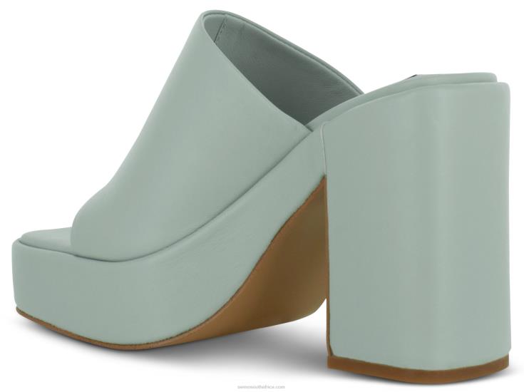 Sage matte kid leather heeled mules featuring a chunky heel, thick front strap and slip-on design.