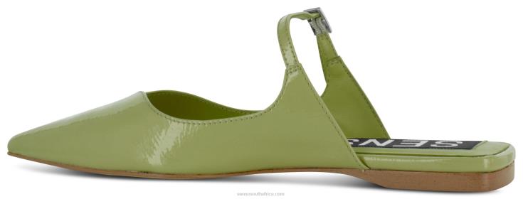 Pistachio kid naplak leather ballet flats/mules featuring slip-on style, pointed toe, buckle fastening, silver-tone hardware, branded leather insole and flat rubber sole.