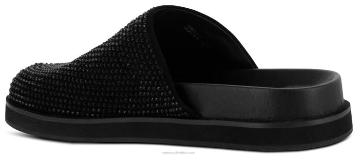 Ebony faux suede and crystal mule, featuring a diamante design, closed toe and a rubber sole.
