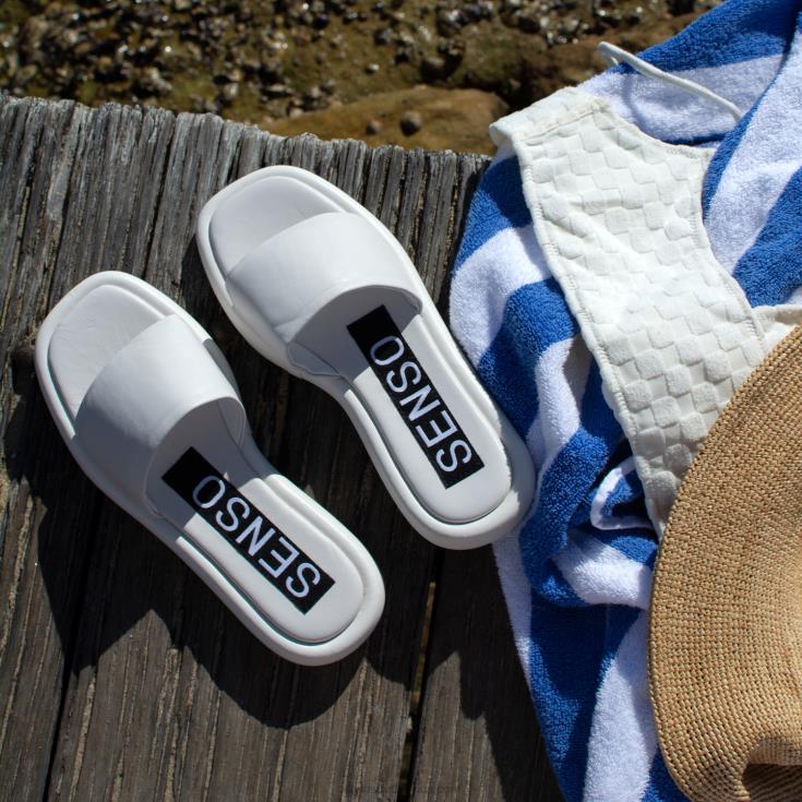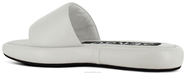 Chalk matte kid leather sandal featuring a slip-on design and rubber soles.