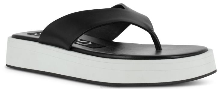 Ebony matte kid leather sandals featuring a criss cross designed strap with a soft cushioned inner and rubber sole.