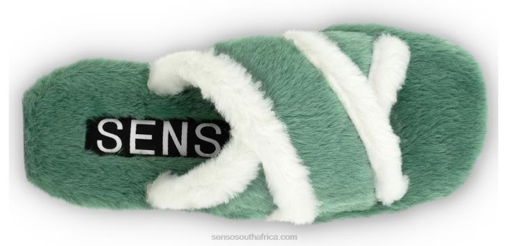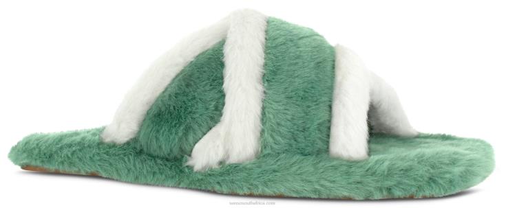Moss faux shearling slippers, featuring a fluffy slip-on design, criss-cross straps and a light rubber sole.