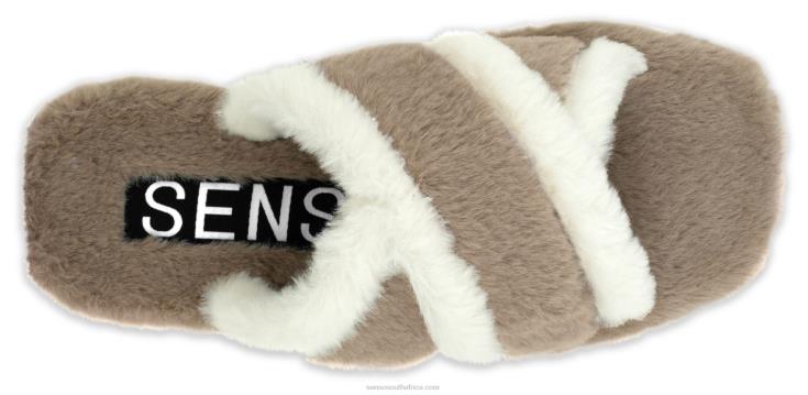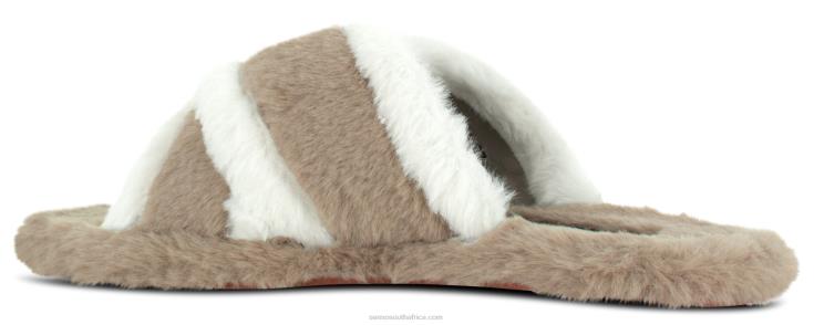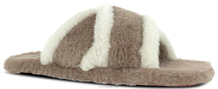 Mushroom faux shearling sandal, featuring a fluffy slip-on design and light rubber sole.
