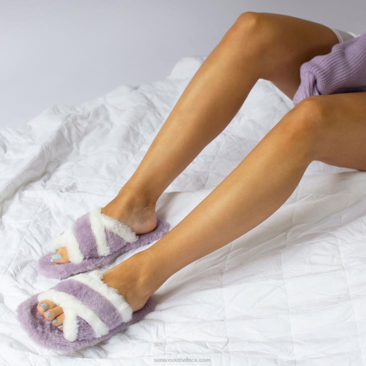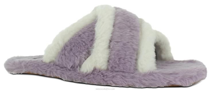 Jacaranda faux shearling slippers, featuring a fluffy slip-on design, criss-cross straps and a light rubber sole.