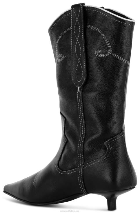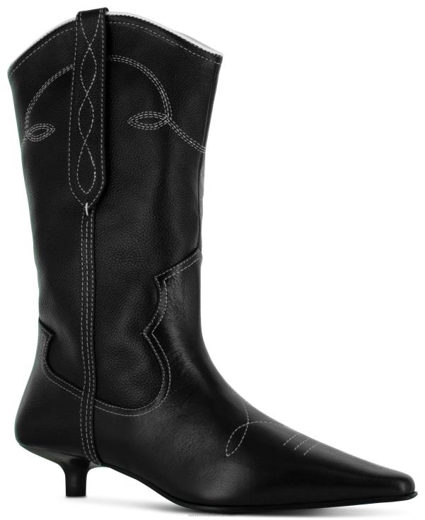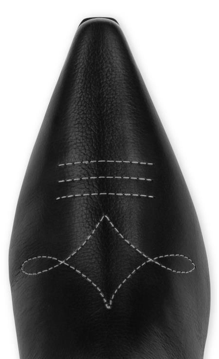 Ebony grained calf leather cowboy boots featuring contrast stitching and a subtle kitten heel.