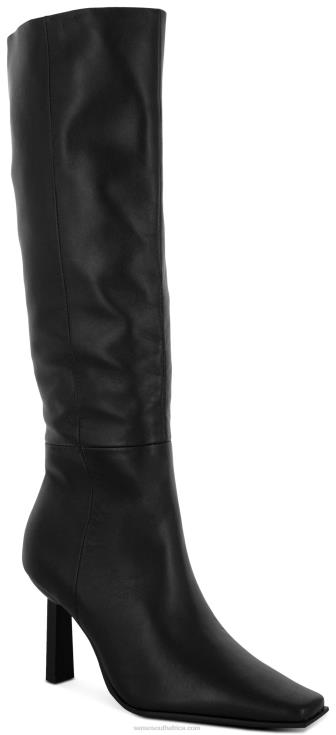 Ebony matte kid knee-high boots, featuring a stiletto heel, squared toe and black resin sole.